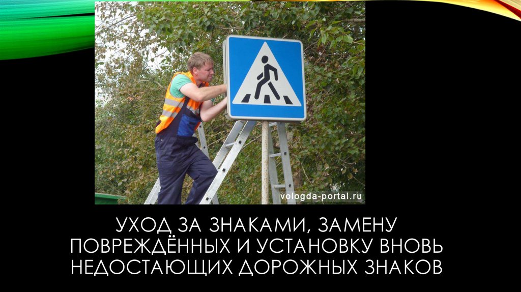 УХОД ЗА ЗНАКАМИ, ЗАМЕНУПОВРЕЖДЁННЫХ И УСТАНОВКУ ВНОВЬ
