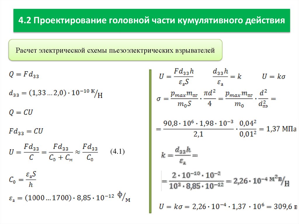4.2 Проектирование головной части кумулятивного действияРасчет электрической схемы пьезоэлектрических взрывателей