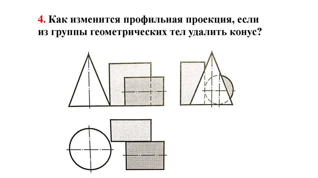 4. Как изменится профильная проекция, еслииз группы геометрических тел удалить конус?