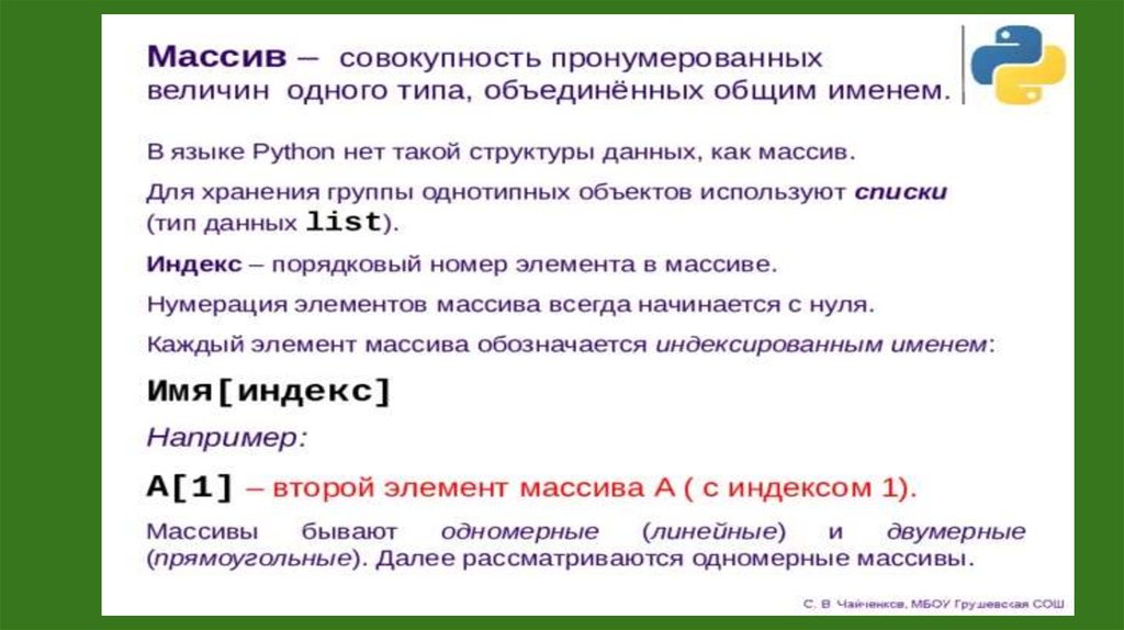 массива