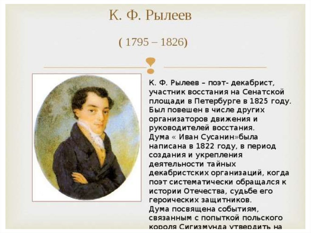 Рылеев и его произведение «Иван Сусанин»