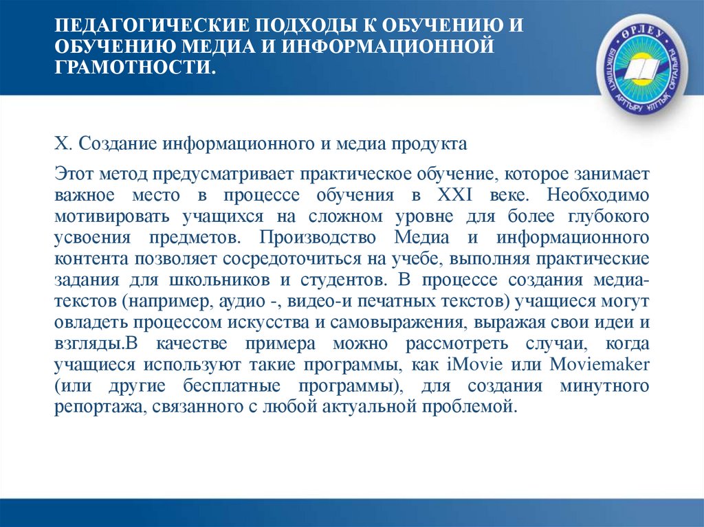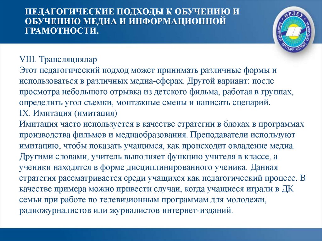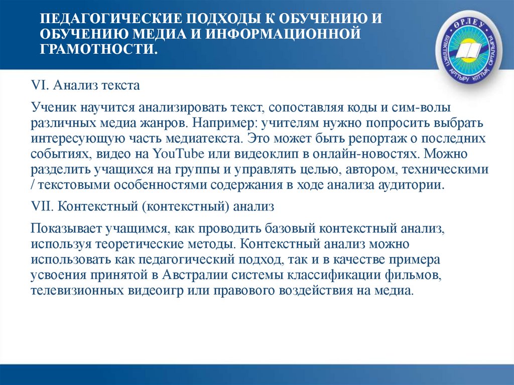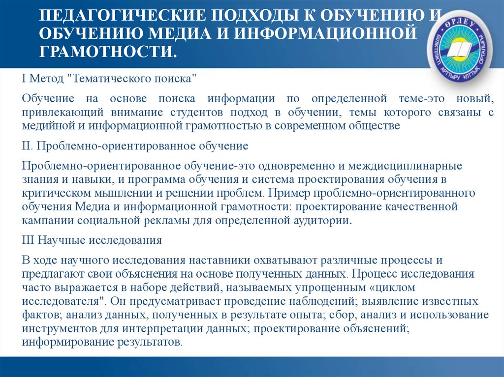 ПЕДАГОГИЧЕСКИЕ ПОДХОДЫ К ОБУЧЕНИЮ ИОБУЧЕНИЮ МЕДИА И ИНФОРМАЦИОННОЙ