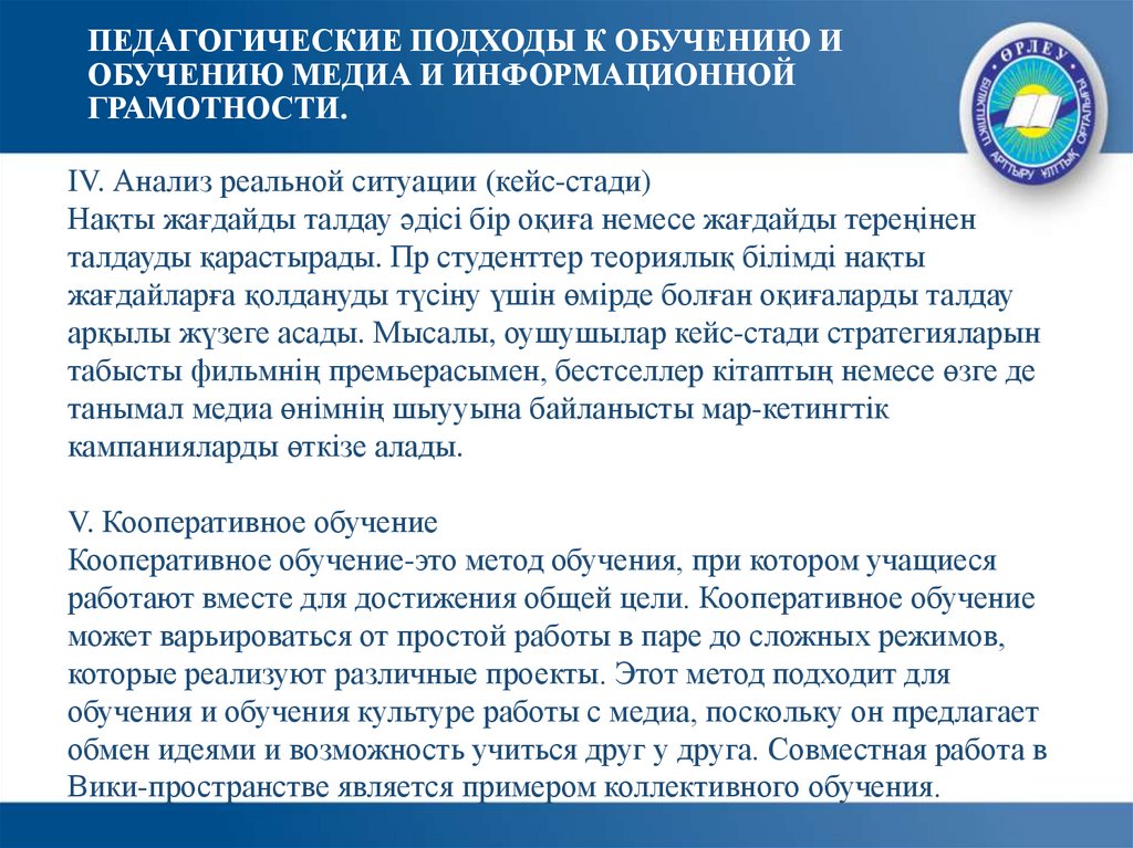 арқылы жүзеге асады. Мысалы, оушушылар кейс-стади стратегияларын