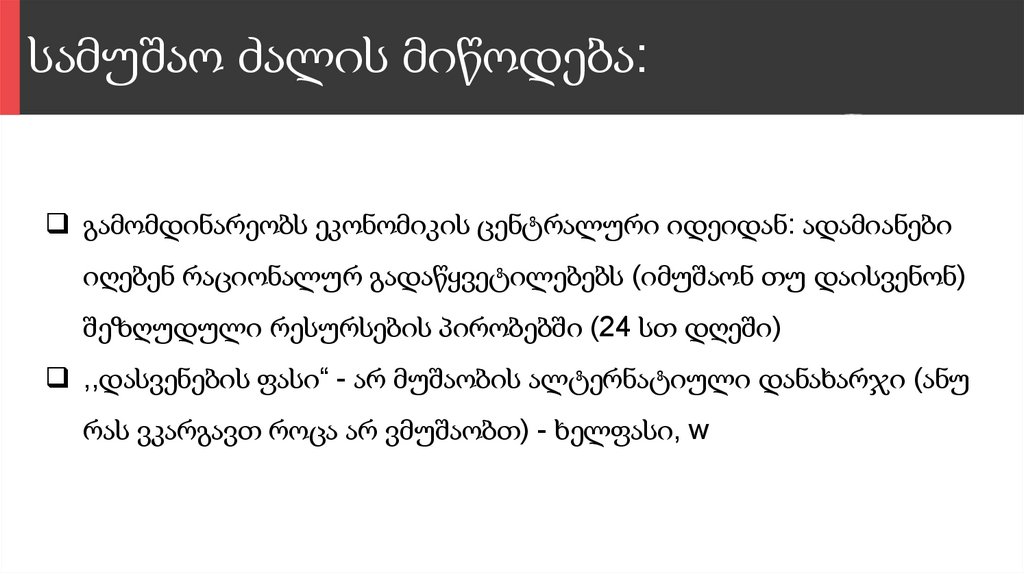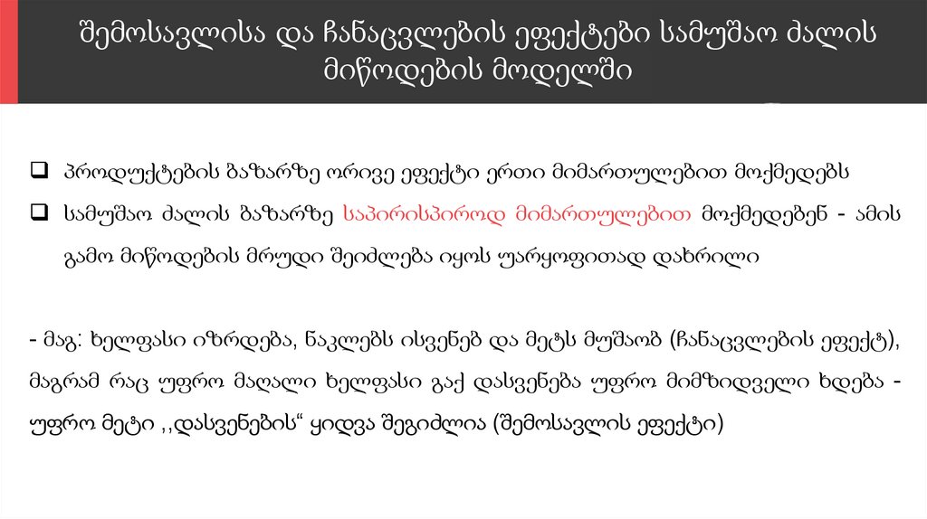 - მაგ: ხელფასი იზრდება, ნაკლებს ისვენებ და მეტს მუშაობ (ჩანაცვლების ეფექტ),