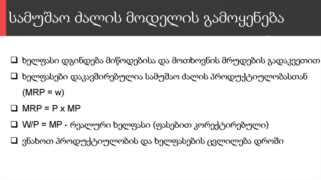 W/P = MP - რეალური ხელფასი (ფასებით კორექტირებული)