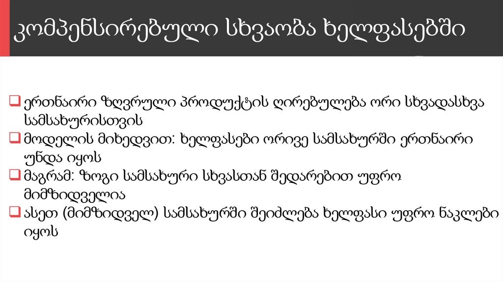 კომპენსირებული სხვაობა ხელფასებშიერთნაირი ზღვრული პროდუქტის ღირებულება ორი სხვადასხვა