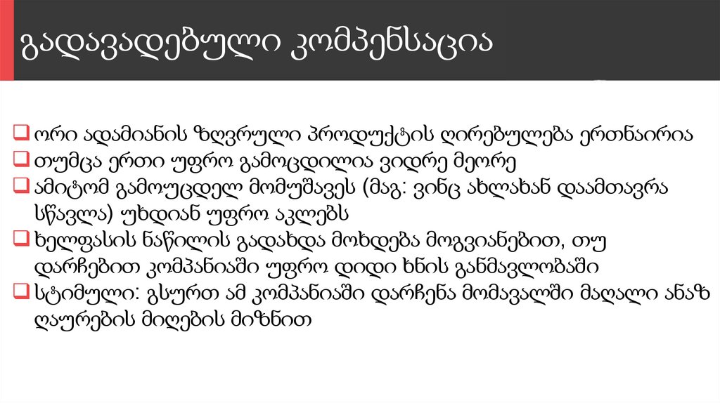 გადავადებული კომპენსაციაორი ადამიანის ზღვრული პროდუქტის ღირებულება ერთნაირია