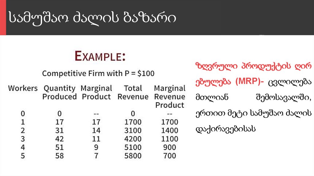 სამუშაო ძალის ბაზარიზღვრული პროდუქტის ღირ