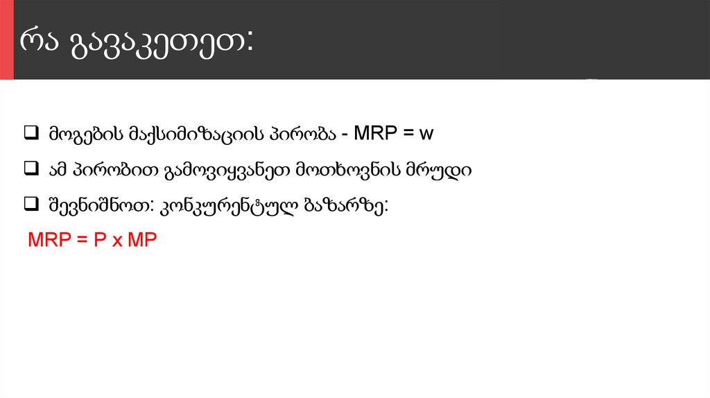 რა გავაკეთეთ:მოგების მაქსიმიზაციის პირობა - MRP = w