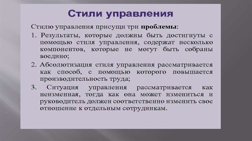 Стиль управления оказывает существенное влияние наэффективность организации производства и руководства