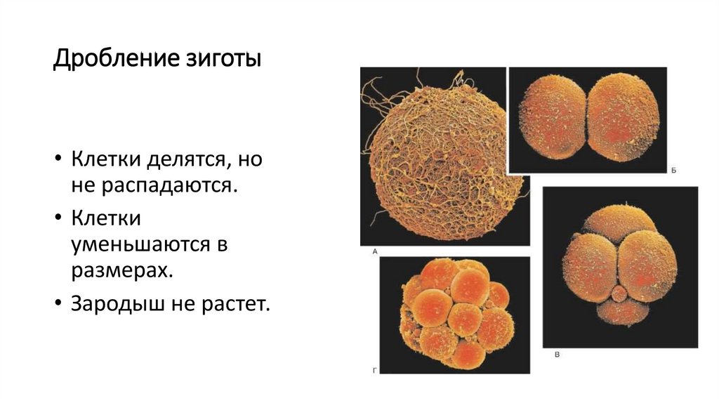 Дробление зиготы• Клетки делятся, но