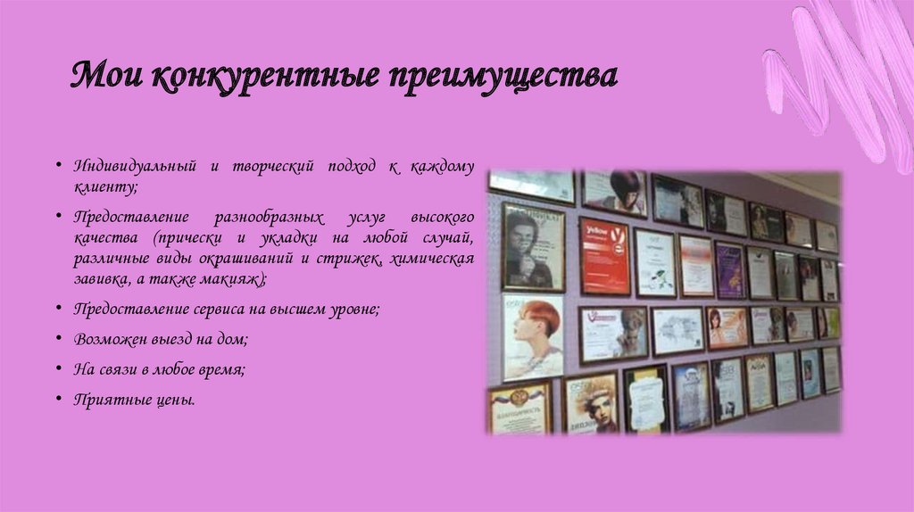 Мои конкурентные преимущества• Индивидуальный и творческий подход к каждому
