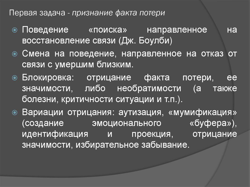 Четвертая задача - выстроить новое отношение к умершемуи продолжать жить.