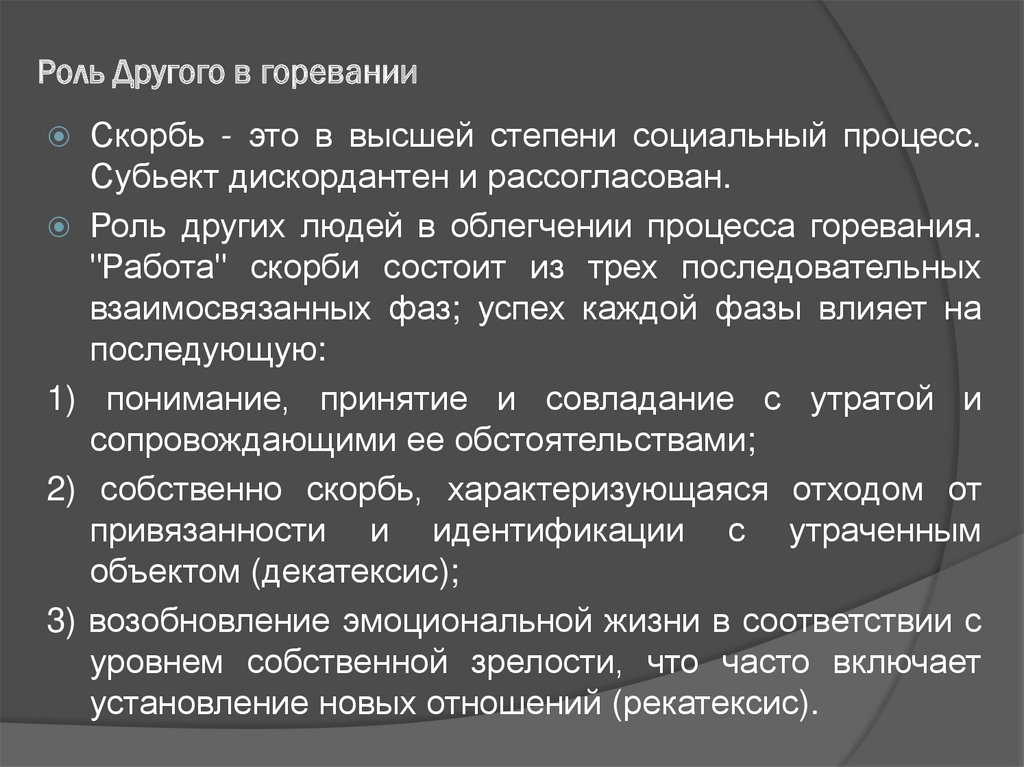 Роль Другого в гореванииСкорбь - это в высшей степени социальный процесс.