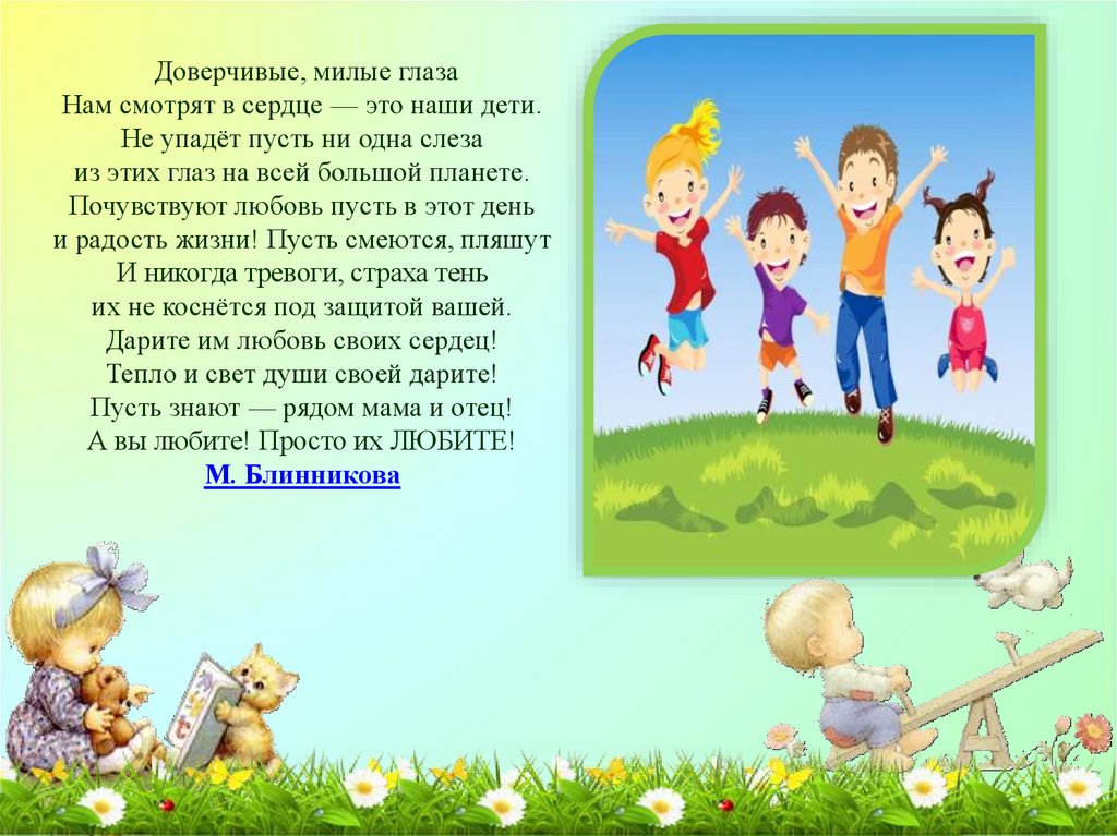 Доверчивые, милые глазаНам смотрят в сердце — это наши дети.