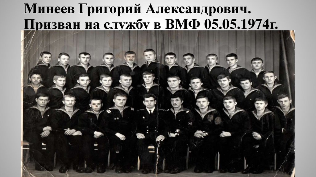 Минеев Григорий Александрович.Призван на службу в ВМФ 05.05.1974г.