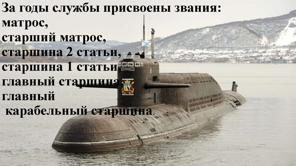 За годы службы присвоены звания:матрос,