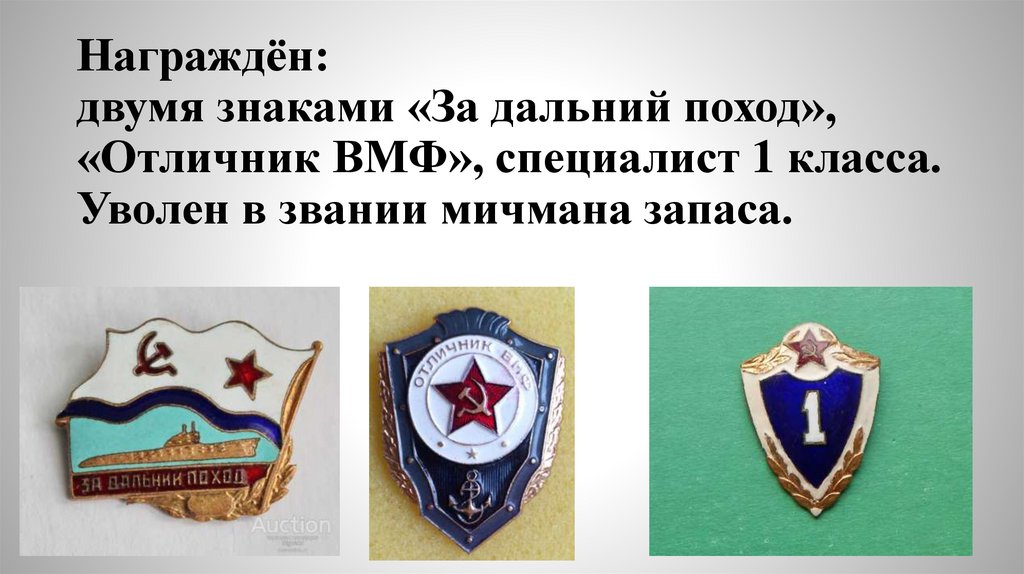 Награждён:двумя знаками «За дальний поход»,