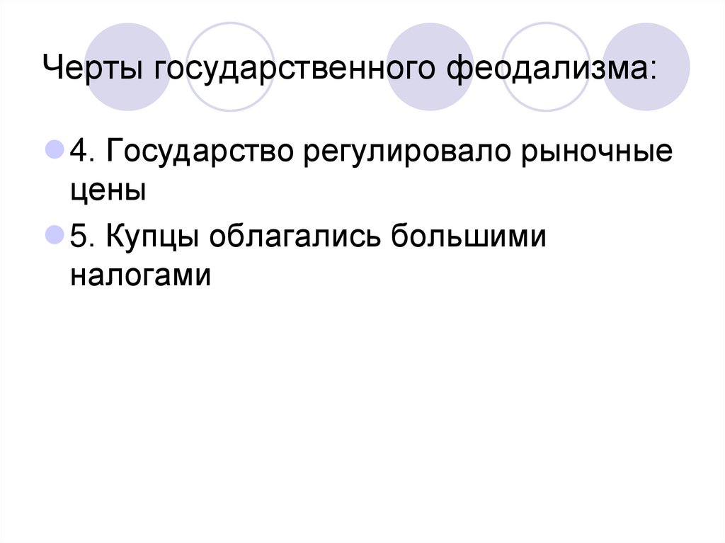 Черты государственного феодализма:4. Государство регулировало рыночные
