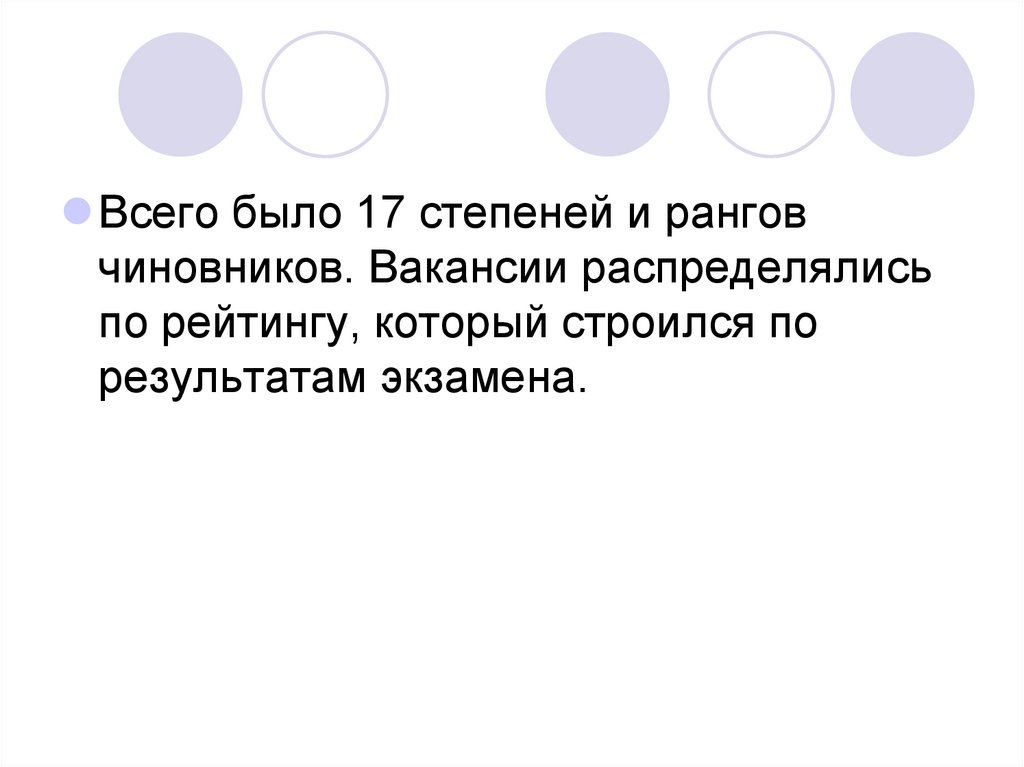 Всего было 17 степеней и ранговчиновников. Вакансии распределялись
