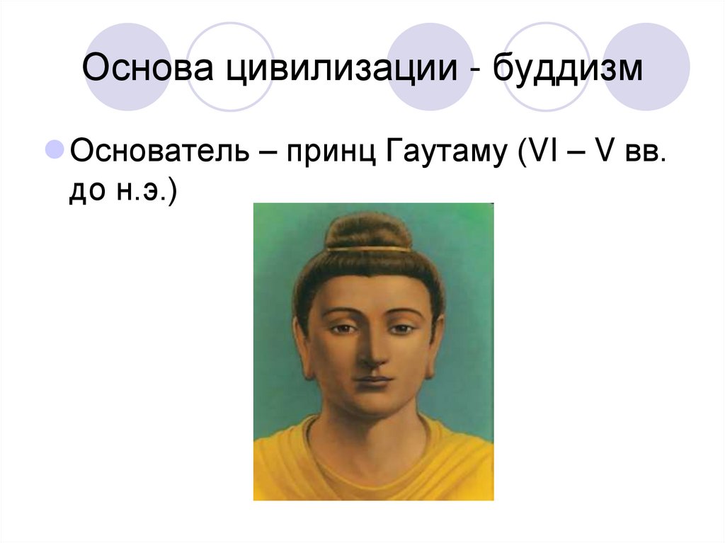 Основа цивилизации - буддизмОснователь – принц Гаутаму (VI – V вв.