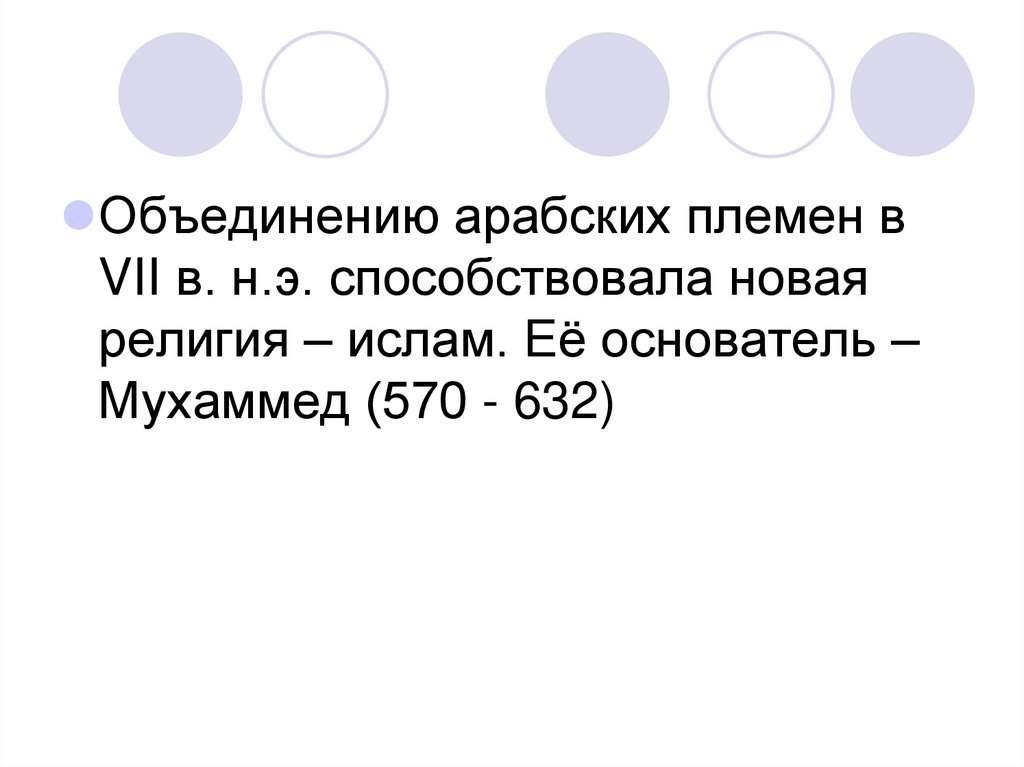 Объединению арабских племен вVII в. н.э. способствовала новая