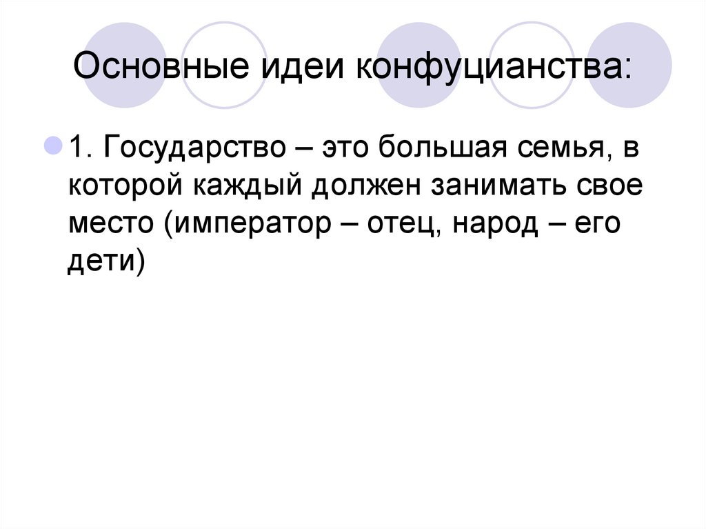 Основные идеи конфуцианства:1. Государство – это большая семья, в
