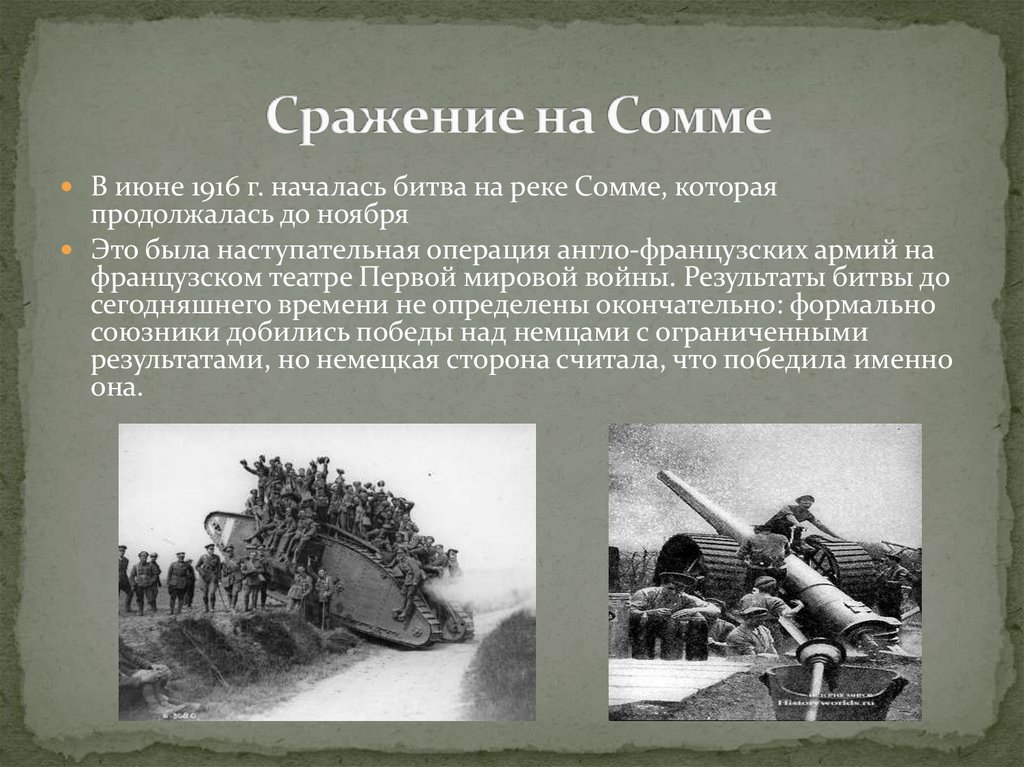 В июне 1916 г. началась битва на реке Сомме, котораяпродолжалась до ноября