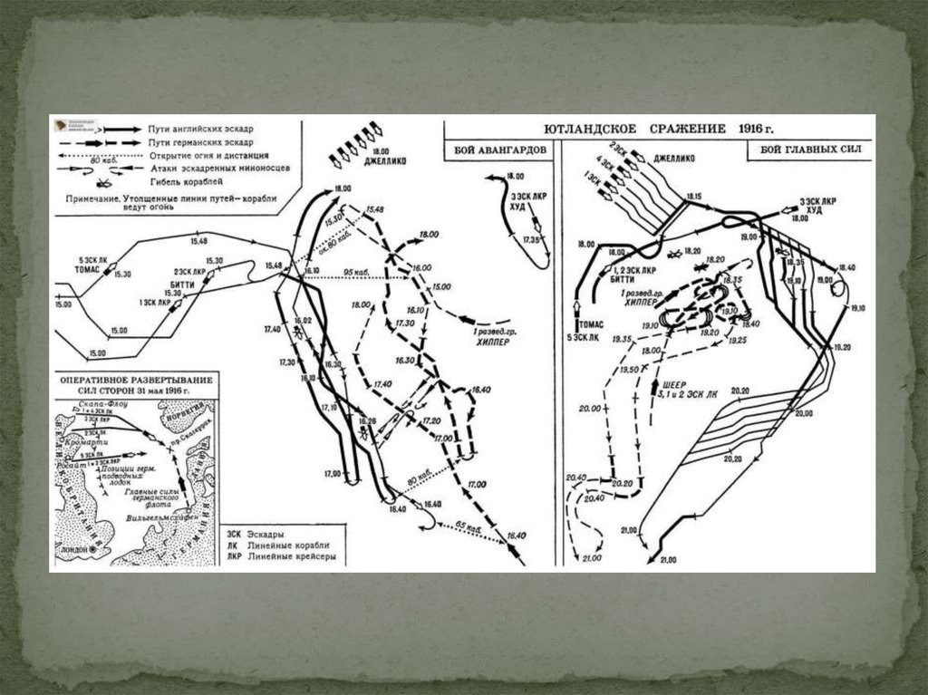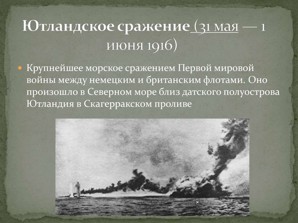Крупнейшее морское сражением Первой мировойвойны между немецким и британским флотами. Оно