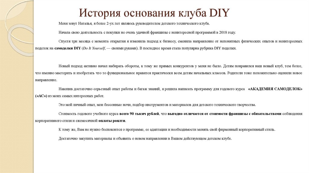 История основания клуба DIYМеня зовут Наталья, я более 2-ух лет являюсь руководителем детского технического клуба.