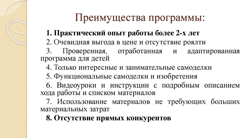 Преимущества программы:1. Практический опыт работы более 2-х лет