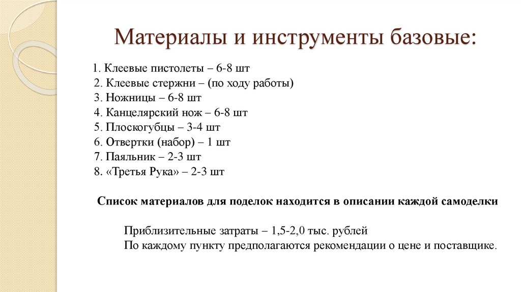 Материалы и инструменты базовые:1. Клеевые пистолеты – 6-8 шт