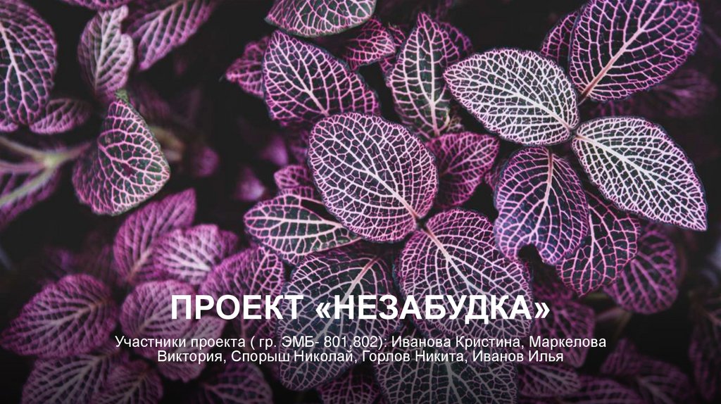 ПРОЕКТ «НЕЗАБУДКА»Участники проекта ( гр. ЭМБ- 801,802): Иванова Кристина, Маркелова