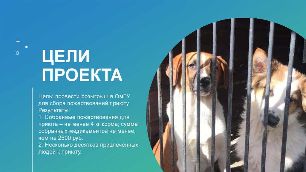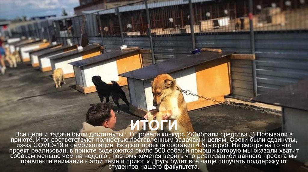приюте. Итог соответствуют полностью поставленным задачам и целям. Сроки были сдвинуты,