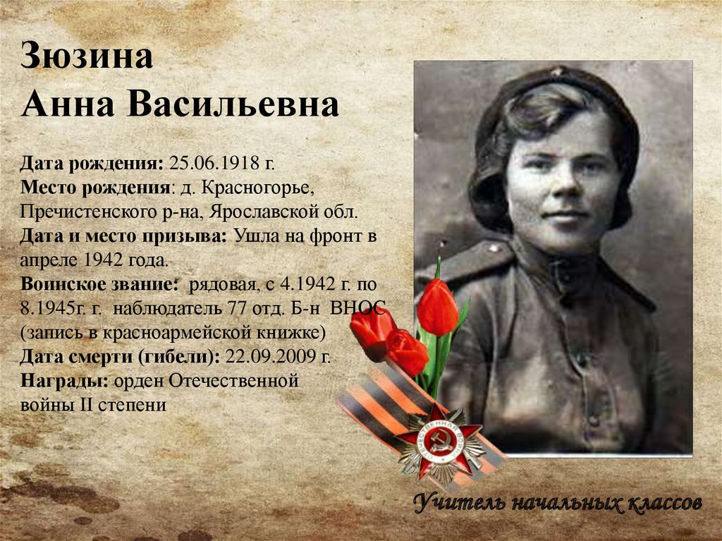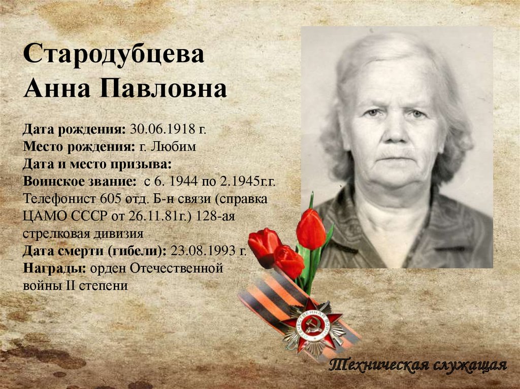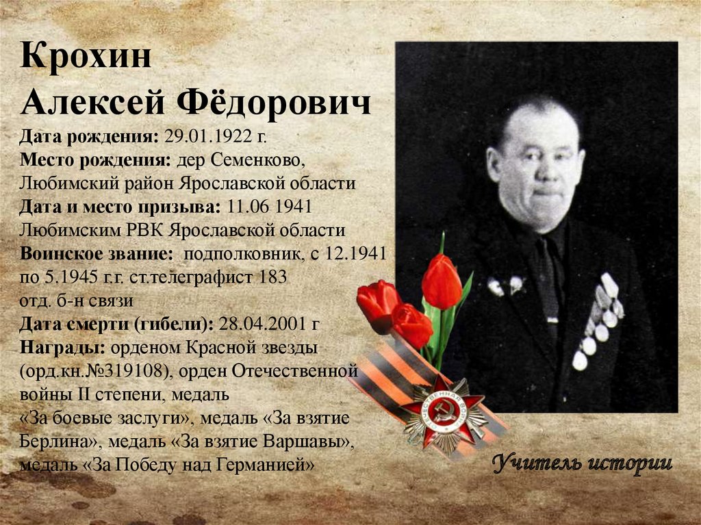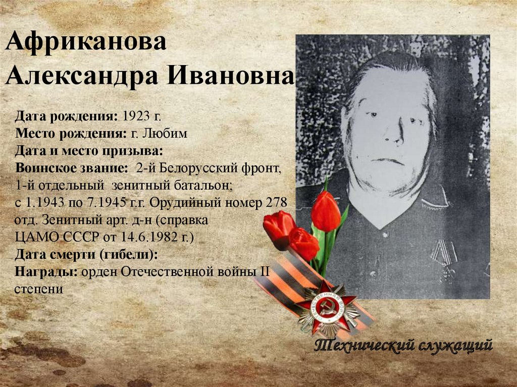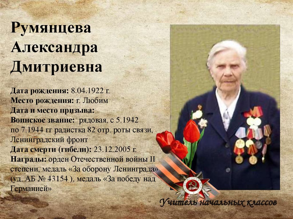 Воинское звание: с 7.1941 по 5.1945г.г.
