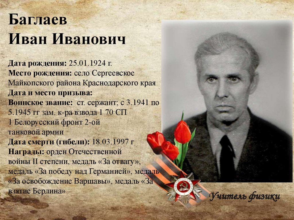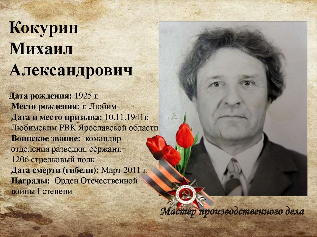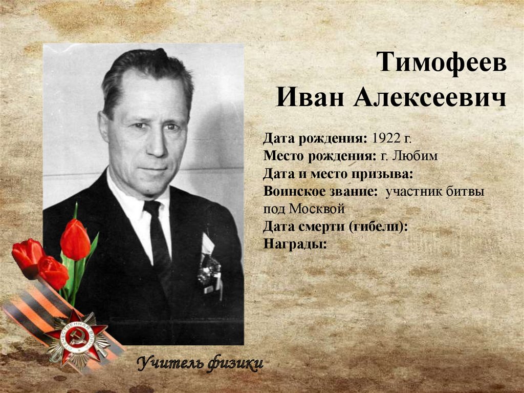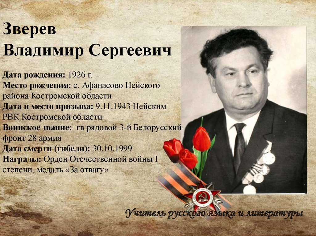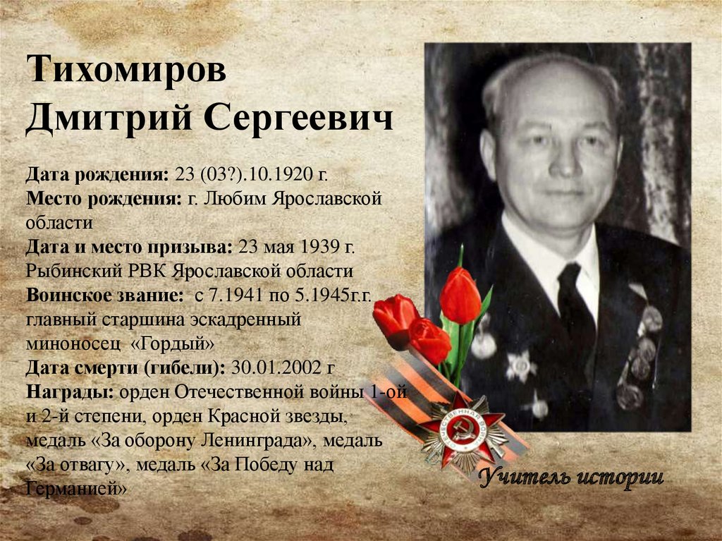 Воинское звание: с 7.1941 по 5.1945г.г.
