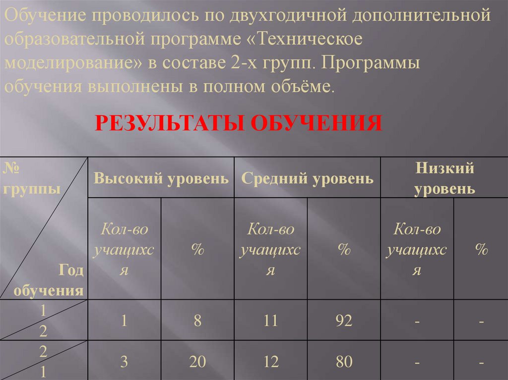 Обучение проводилось по двухгодичной дополнительнойобразовательной программе «Техническое