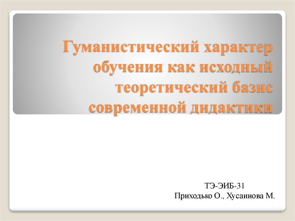 Гуманистический характер обучения как исходный теоретический базис современной дидактики