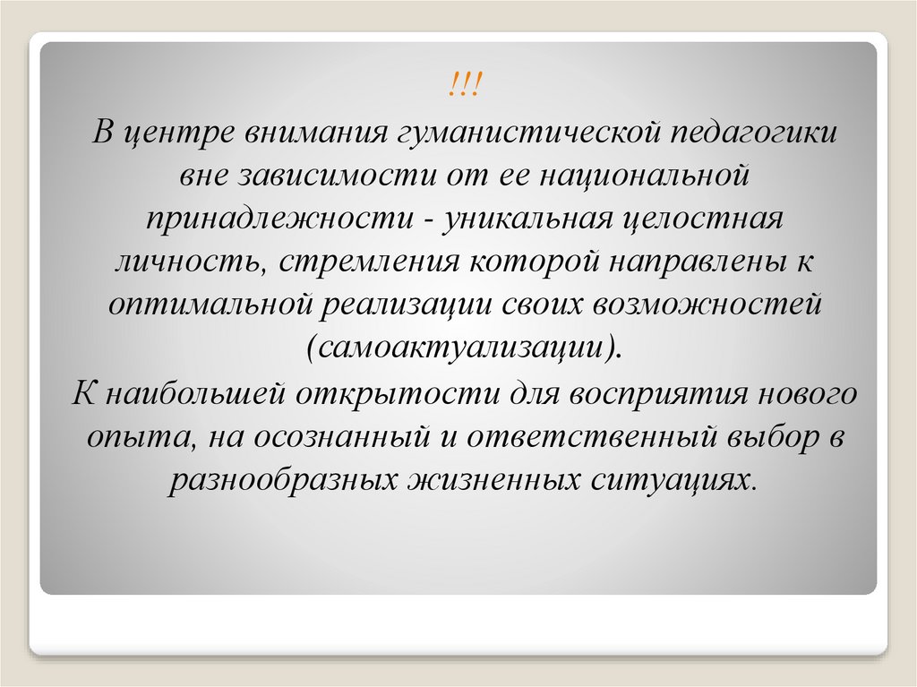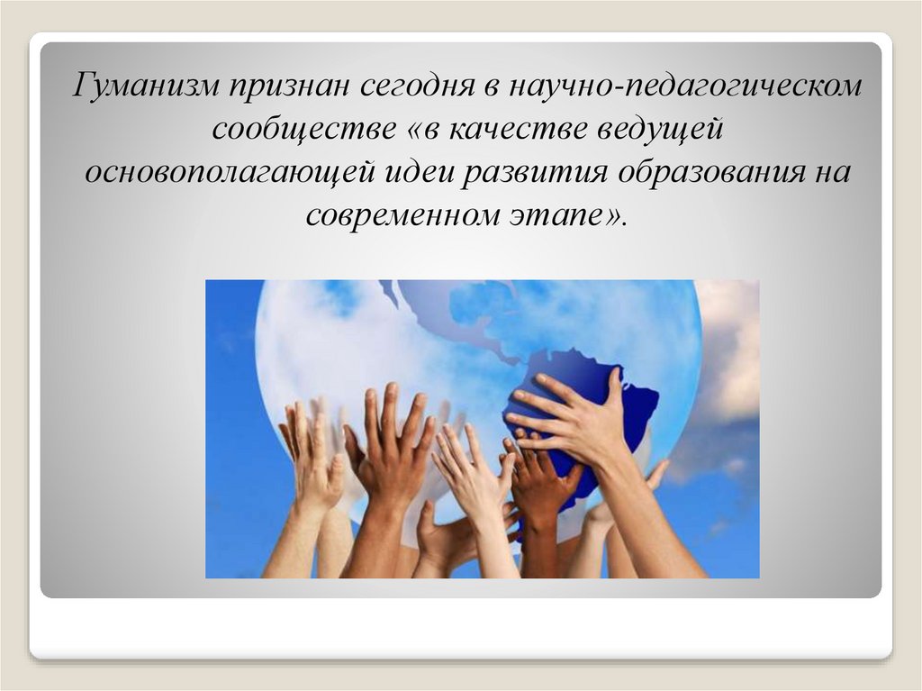 Гуманизм признан сегодня в научно-педагогическомсообществе «в качестве ведущей