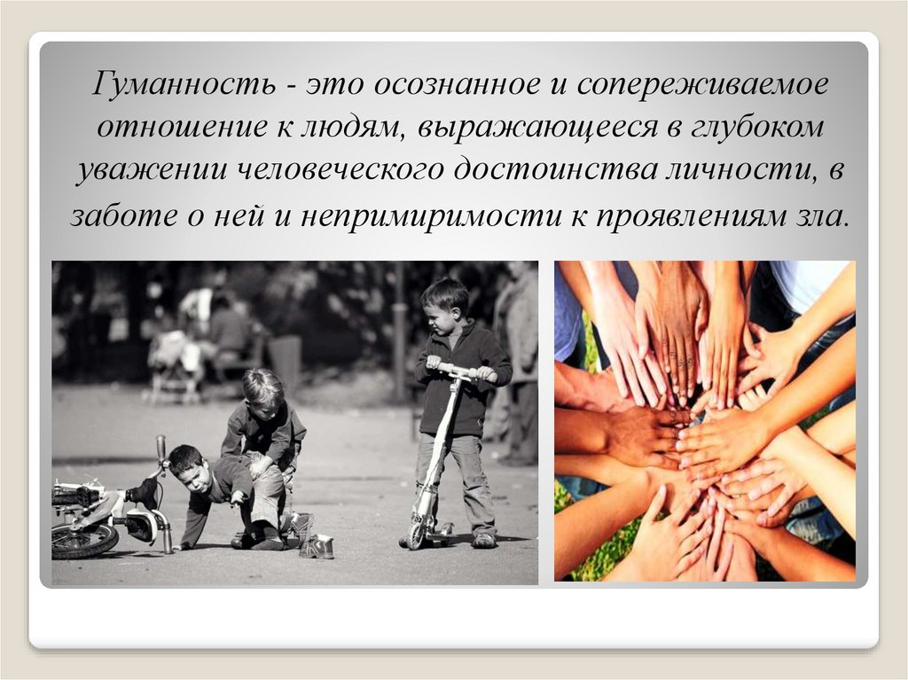 Гуманность - это осознанное и сопереживаемоеотношение к людям, выражающееся в глубоком