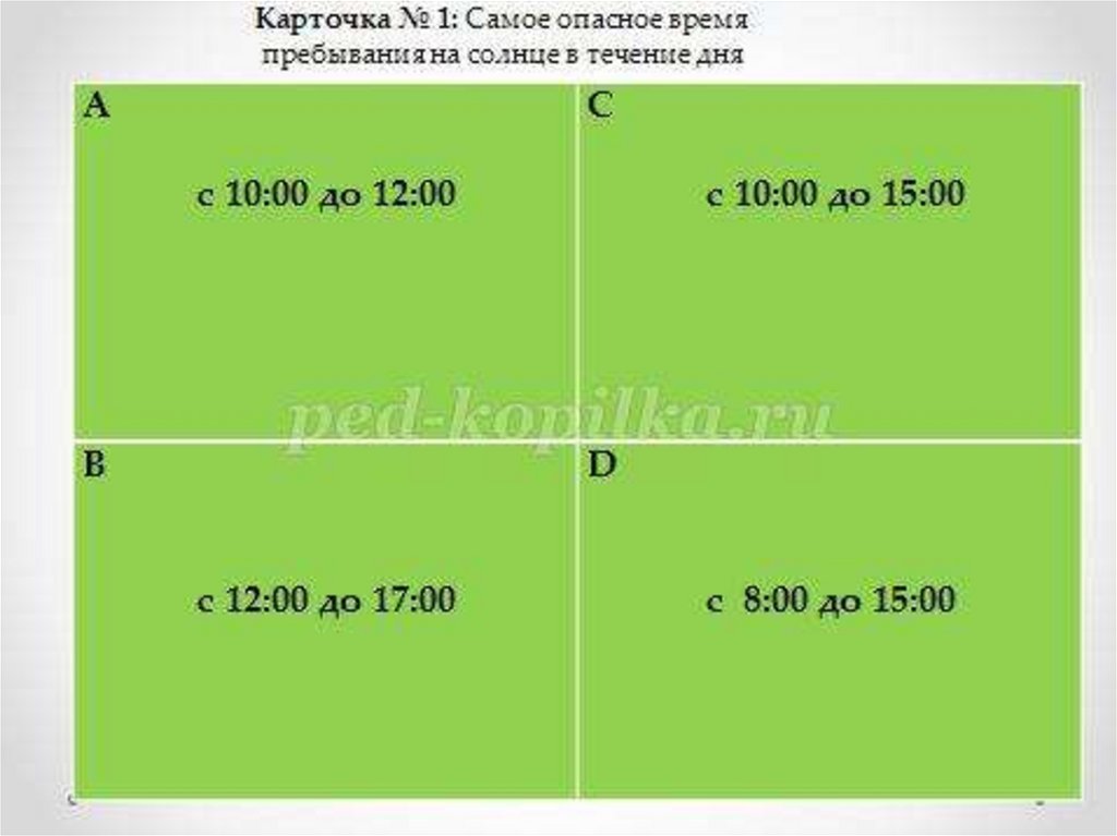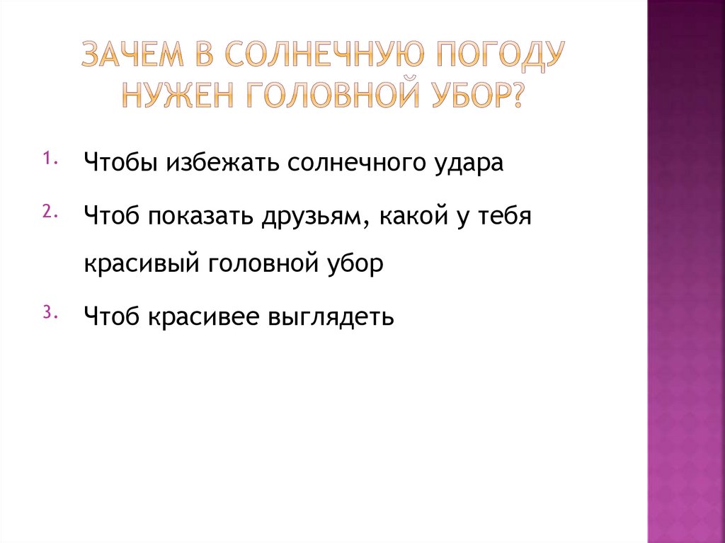 1.Чтобы избежать солнечного удара