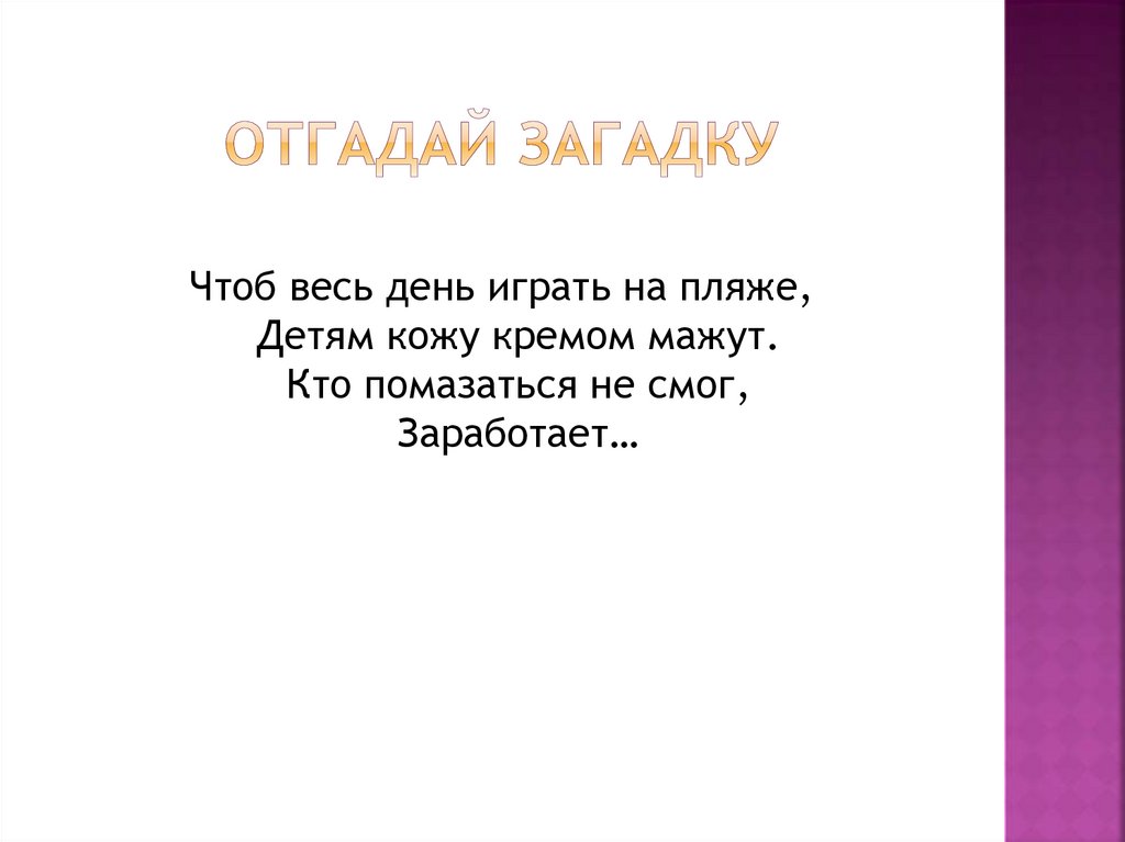 Чтоб весь день играть на пляже,Детям кожу кремом мажут.