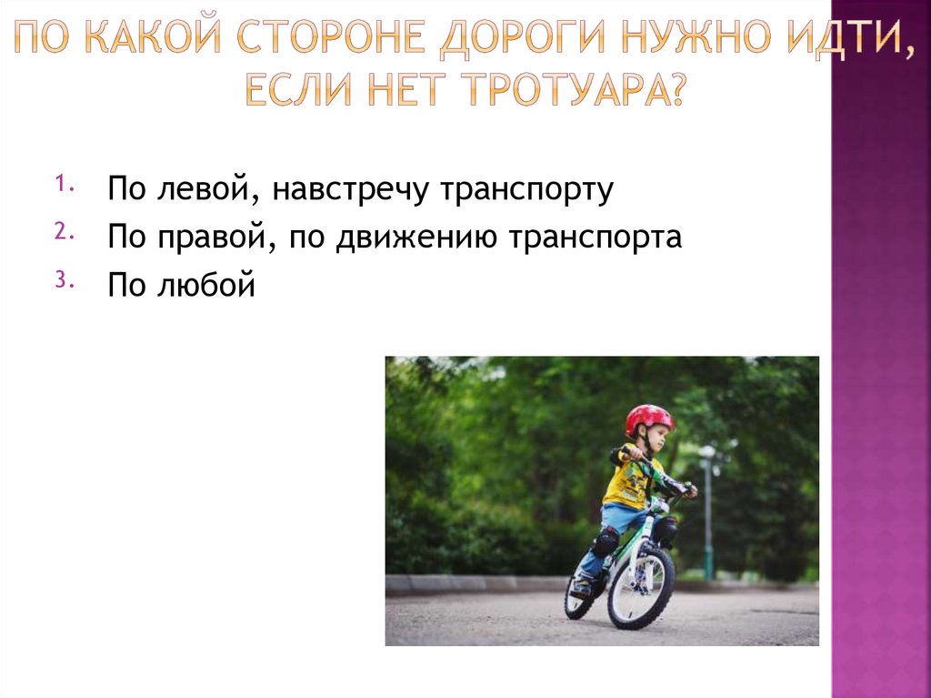 По левой, навстречу транспорту