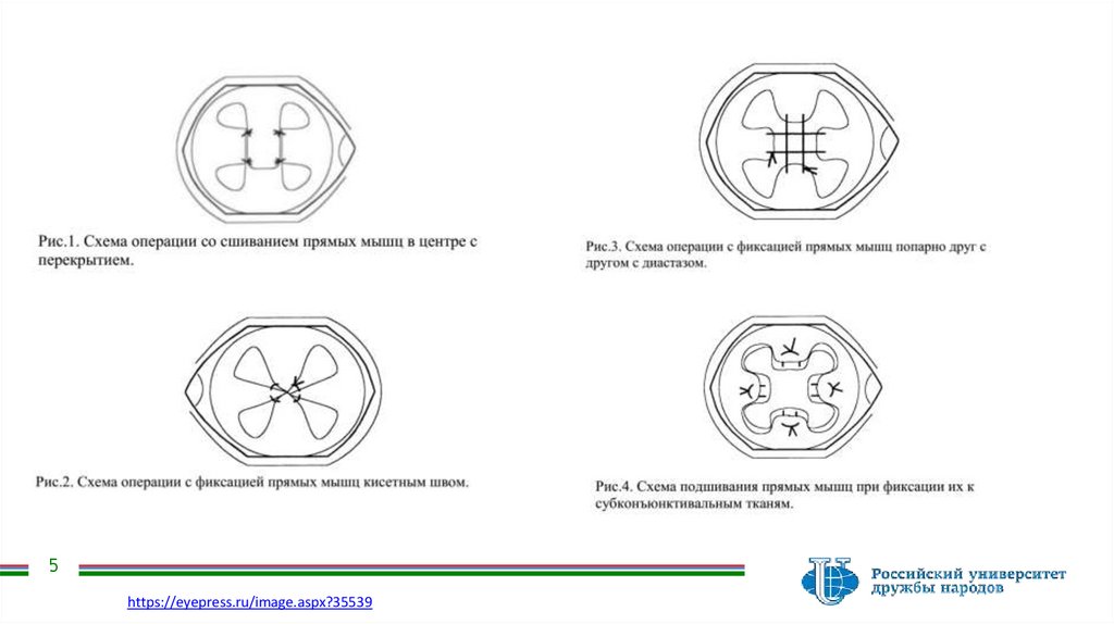 матрасными швами с диастазом 8-10мм, затем ушивают конъюнктиву