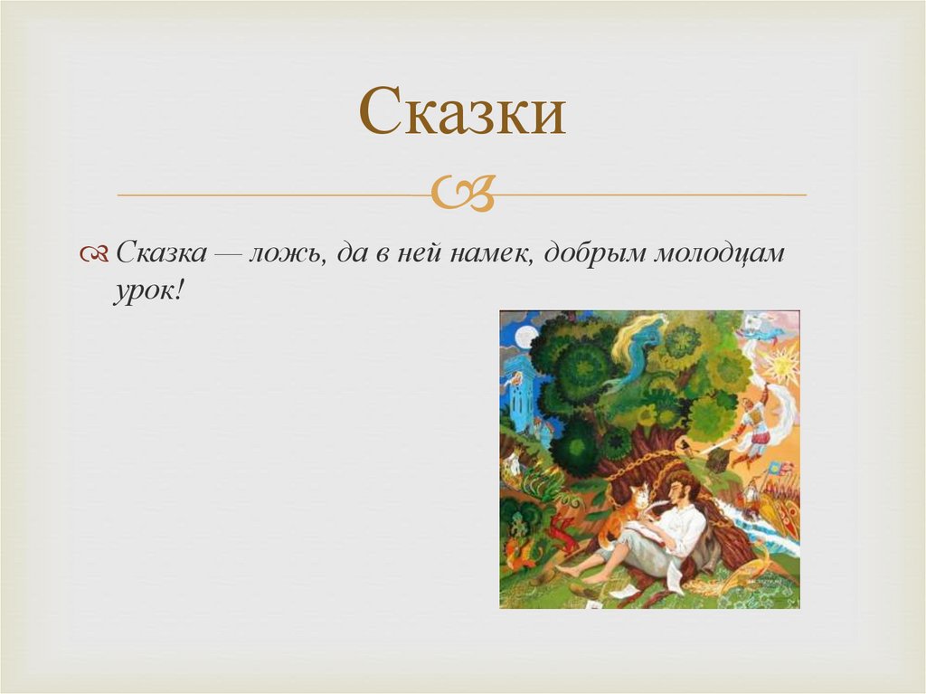СказкиСказка — ложь, да в ней намек, добрым молодцам