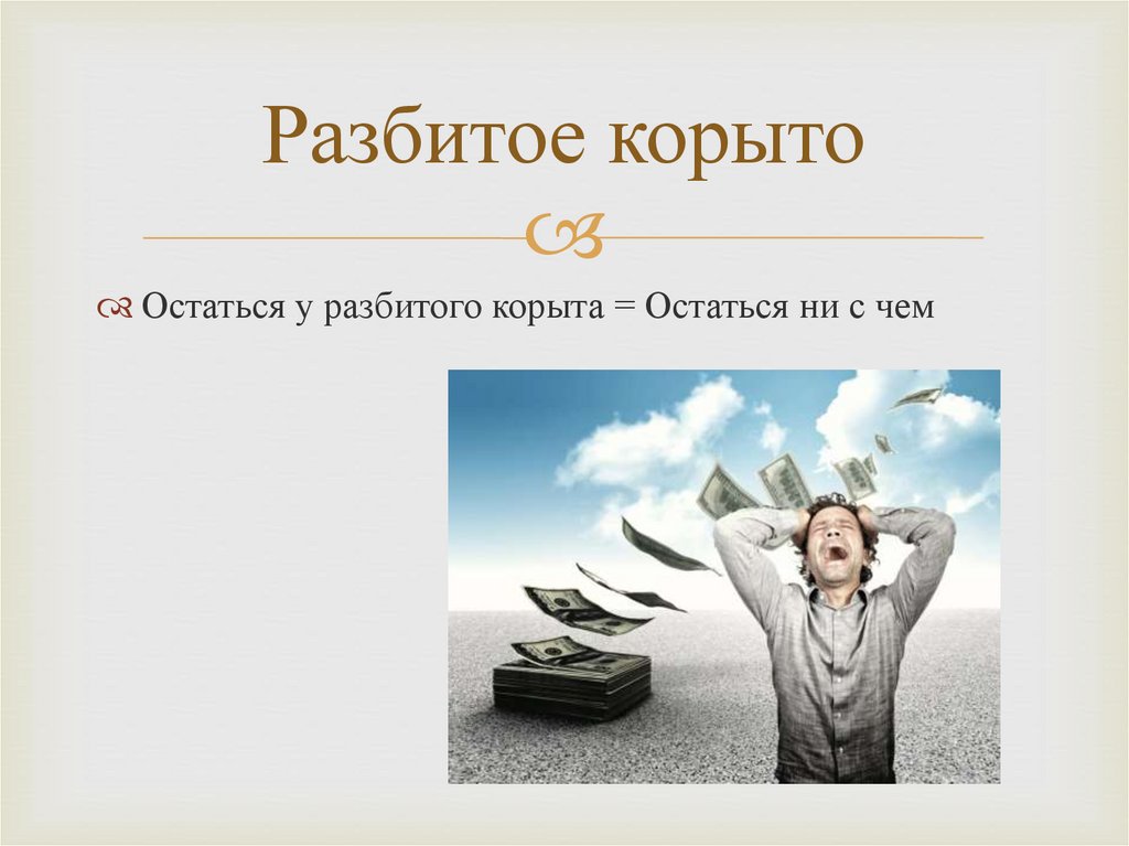 Разбитое корытоОстаться у разбитого корыта = Остаться ни с чем