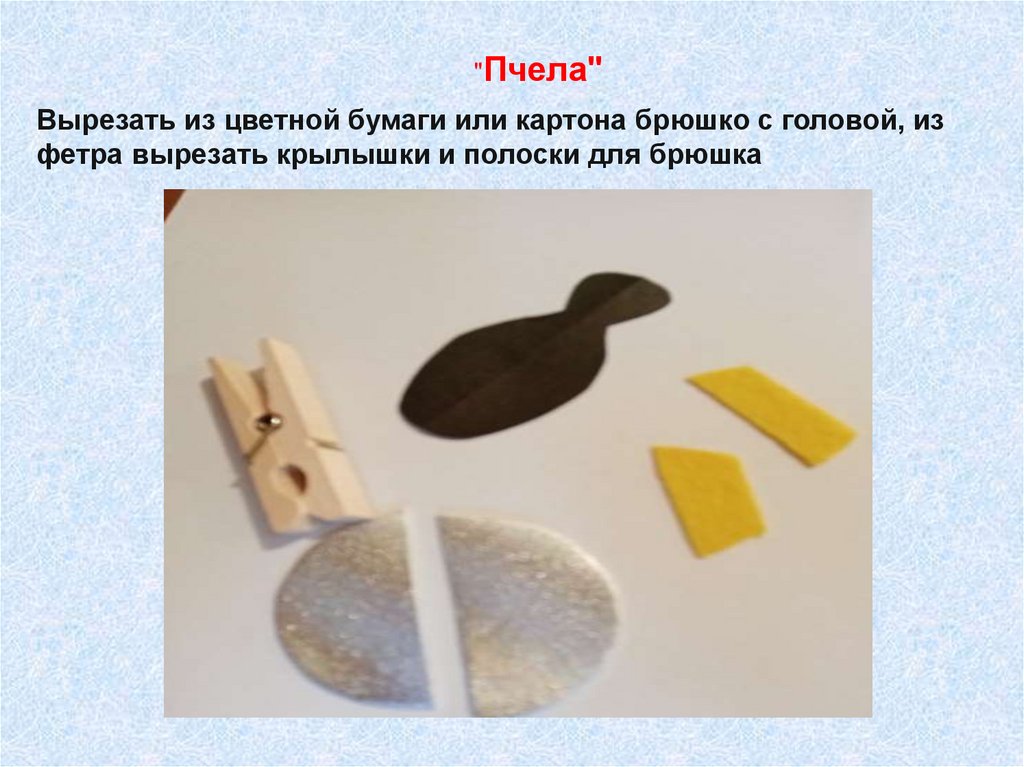 "Пчела"Вырезать из цветной бумаги или картона брюшко с головой, из