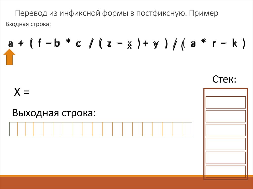 Перевод из инфиксной формы в постфиксную. ПримерВходная строка:
