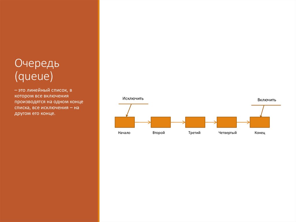FIFO, элементы добавляются в один конец списка, а извлекаются с