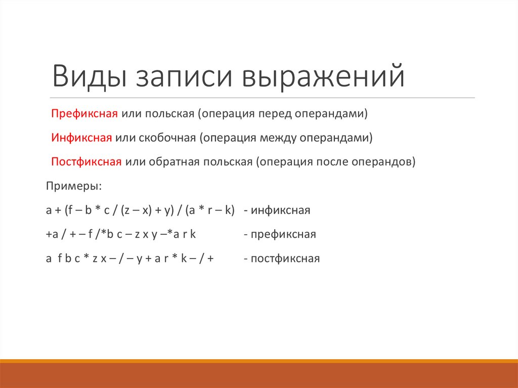 Виды записи выраженийПрефиксная или польская (операция перед операндами)
